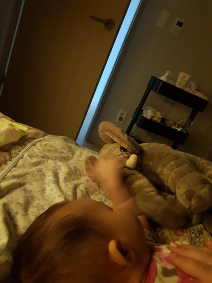 애착인형이라고 만져보기 보다는... 재우는게 짜증나는 잠투정의 툭툭 치는 정도랄까? 인형을 사준 동생에게 보내줬더니 심장폭행 당했다는 기분 좋은 소리를 해주었다...ㅎㅎ