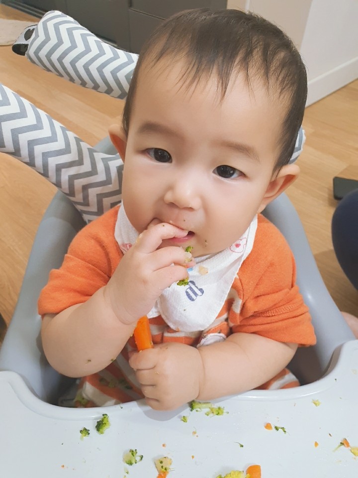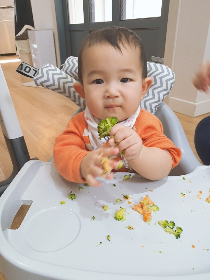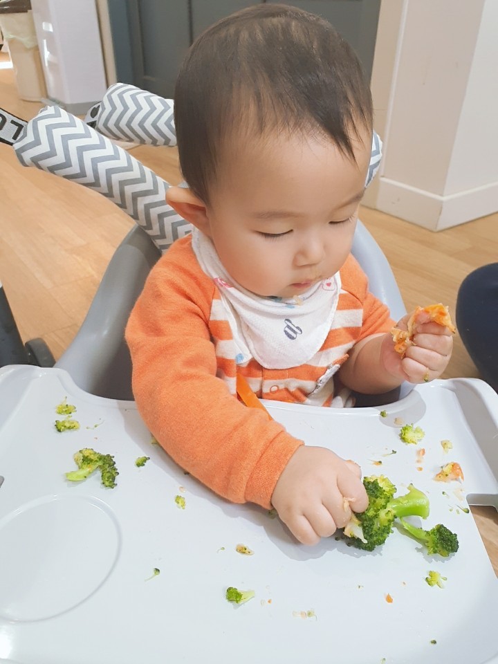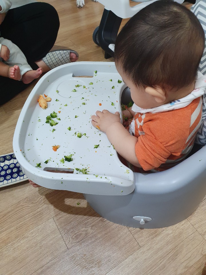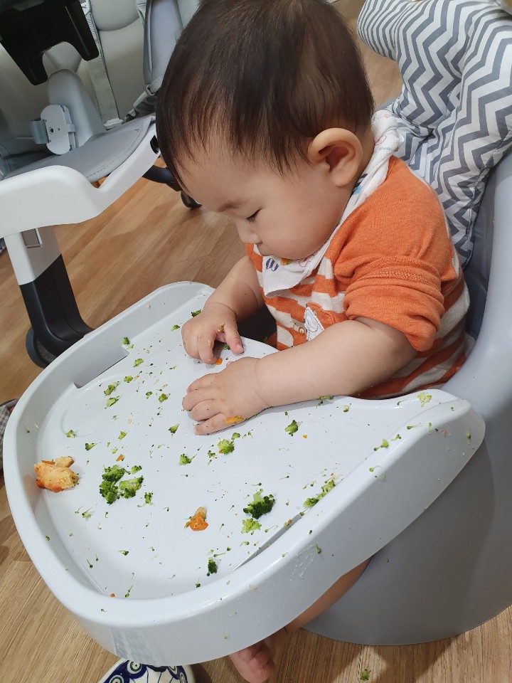 사실 이게 처음이자 마지막이었음 하지만, 꼭 필요한 자기주도 식사래. 마음먹고... 좀 많이 마음먹고 아가, 좀 더 떡뻥이랑 과자, 치즈로 연습한뒤에 하자..! ㅎㅎㅎㅎㅎ 그래도 재미있었지?