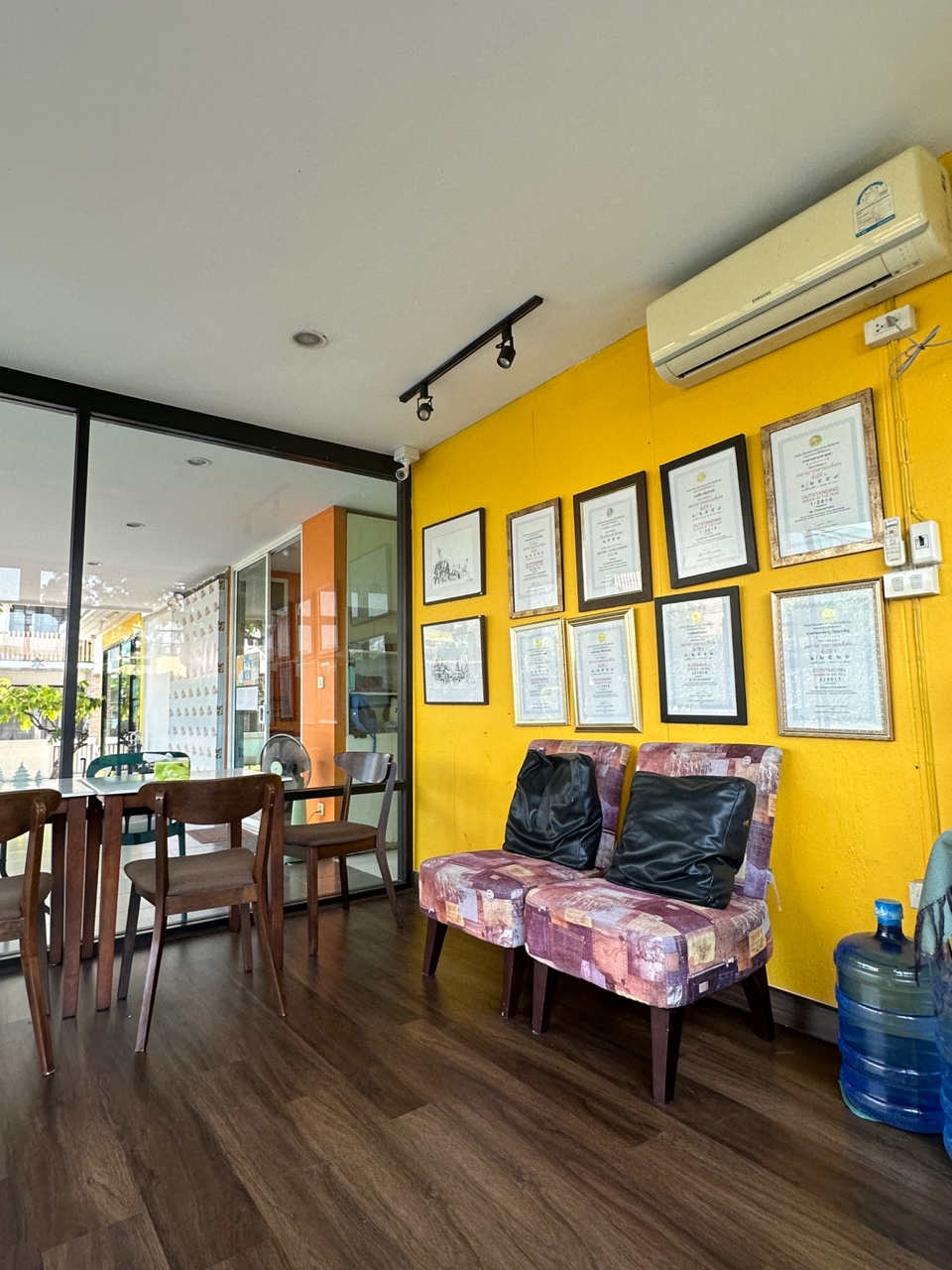 들어가서 앉아있을 수 있는 공간이 따로있더라구요. 아마 빨리오는 부모님들 대기 또는 어제가보니 아이들도 여기서 에어컨 틀고 놀기도하고, 한번씩 주말에는 장난감 만들기 등 수업들도 있다고 하더라구요. 주말 미술 수업이나 간단한 수업들을 할 때에는 여기를 사용한다고 하더라구요 :)