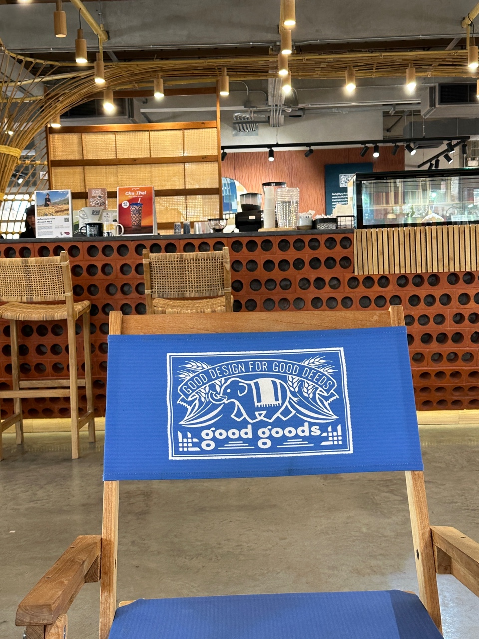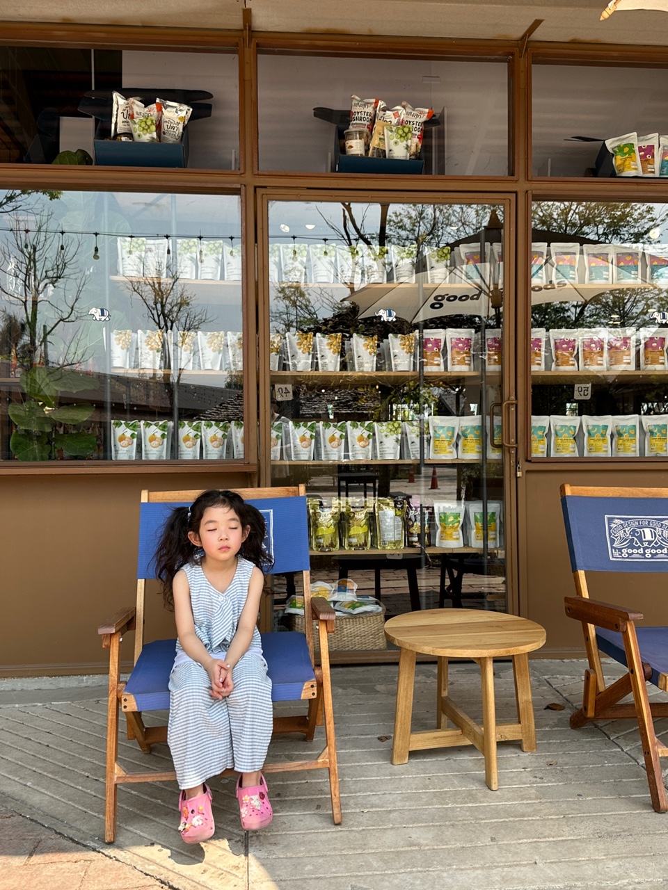 오자마자 조금만 걸어다녀도 한낮온도 38도는 감당몬해요.... 아이도 너무 더워서 헥헥거리고.. 거의 오픈에 맞춰왔더니 주변가게들도 오픈준비중이고..ㅠㅠ 중요한것은.... 밥을 먹고와버렸다는 사실입니다... 더이상 무엇을 시켜먹을 자신이 없었어요..! 유일하게 열려있고, 징짜이마켓에 플리마켓 제외하고 항상 오픈하는 멋진 goodgoods! 이름한번 마음에 들더라구요.. 굿굿즈에요! 좋은 물건들..! 직설적이고 진짜 제맘에 쏙 드는 이름이었습니다. 굿굿즈 로고조차도 넘나 제서타일이어서 의자에 프린팅이 마음에 들어서 한번찍어보았습니다 :)